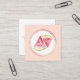 Cartões de visitas com fatias de melancia legal em forma de melancia na forma de um ícone de mídia social com uma borda metálica falsa em rosa e fundo rosa em pó.