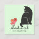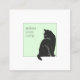 Ilustração de gato preto doce sobre fundo verde-menta-claro com corações e tipografia branca, para seu gato sentado ou cartão de visita de embarque. Personalize no verso da placa.