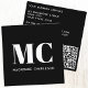 Cartão De Visita Quadrado Iniciais de Monograma Moderno Código QR Preto Bran