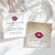 Design elegante e simples em um formato quadrado único apresenta a inscrição negra clássica em um fundo ombre ouro adornado com fios de luzes de cordas de folhas falsas de ouro. Personalize a frente com seu nome e nome comercial ou ocupação sob um vibrante beijo de impressão de lábio rosa e vibrante, e adicione suas informações de contato de cheio, incluindo horas, se aplicável, ao lado oposto. Uma bela escolha para maquiadores, profissionais da indústria da beleza ou distribuidores de cores labiais.