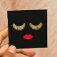 Cartão De Visita Quadrado Lashes Dourados e Lábios Vermelhos Maquietam Artis