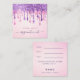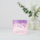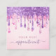 Mantenha os clientes voltando com este cartão de lembrete de compromisso de gotejamento de brilho roxo e cor-de-rosa. Projetado em um gradiente em forma de chic ombre, é perfeito para salões de beleza, spas, cabeleireiros, técnicos de unhas ou artistas de maquiagem. Uma design de cintura, glamourosa e profissional, esta placa ajuda-o a agendar os clientes em estilo e, ao mesmo tempo, a mostrar a sua personalidade marca. Adicione ícones de mídias sociais para conexões fáceis e faça com que cada reserva se sinta linda, cintilante e inesquecível.