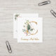 Cartão De Visita Quadrado Letra C com design geométrico Dourado e flores