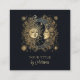 Design de cartão de visita místico celeste apresenta um elegante sol místico e ilustração lunar com estrelas, em ouro amarelo a preto.