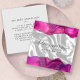 This elegant modern business card features an image of white silk, framed on the top and bottom by magenta watercolor agate borders trimmed with sparkly silver faux glitter. Personalize it with your name in off-black handwriting-style script and your business information in sans serif font. The reverse is a coordinating shade of solid pale gray.
