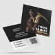 Cartão de visita preto e branco a negros negros para treinadores pessoais, treinadores de malhação ou qualquer outro empresário ou empresa. Apresentando uma foto, nome e cargo na frente. A parte traseira inclui 3 ícones de mídia social para suas contas do Youtube, TikTok e Instagram, além de um código de QR digitalizável. Adicione o identificador da conta, a descrição do trabalho ou as ofertas, o correio eletrônico, o número, o Web site ou qualquer texto personalizado de que necessite. Remova ou adicione ícones e personalize a posição do texto, as fontes ou as cores clicando no botão para editar a design.