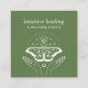 Cartões de visitas elegantes para estúdio de psicoterapia, cicatrização de energia, orientação de vida, yoga ou estúdios de massagem, massagem, professor de meditação, conselheiro de saúde natural, spas ou profissionais de bem-estar apresentam uma ilustração branca de duas mãos abertas criando energia com uma traça espiritual, uma terceira lua de olho e estrelas em fundo verde-muscular sólido. Personalize a frente com duas linhas de texto personalizado e adicione os detalhes de contato de cheio à parte traseira usando o modelo. Incluir ícones sociais Um design de chic para qualquer estúdio de yoga, indústria de bem-estar ou profissão de saúde holística, CORES EDITÁVEIS! Precisa de ajuda? Entre em contato comigo através da loja ou escreva em citronelladesign@gmail.com