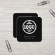Modern and minimal black and white square business card design features your business logo and custom QR code on the back. Customize the wording with your preferred business information, such as the business name, address, phone number, or website. Black background and white text color can be changed.