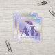A caneta roxa feminina é colocada sobre um fundo hológico e reluzente. Seu nome está em uma tipografia ousada e moderna. Um monte de texto que você pode personalizar para descrever seu negócio notário.