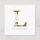 Cartão De Visita Quadrado Monograma Floral L Folhagem Dourada Elegante