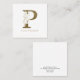 Cartão De Visita Quadrado Monograma Floral P Folhagem Dourada Elegante