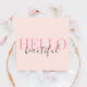 Cartão De Visita Quadrado Na moda Hello Linda Rapariga Script Blush Rosa