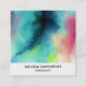 Cartões de visitas artísticos com um design legal e abstrato. As aquarelas se misturam e se misturam para criar a ilusão de uma imagem espacial. Verde com espirais de púrpura, amarela e vermelho-claro misturados com uma mistura de pontos brancos e estrelas. Uma criação artística elegante.