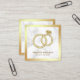 Cartão De Visita Quadrado Noivado de Diamante Dourado de Mármore Branco