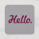 Cartão De Visita Quadrado Olá, Cinza Neutra e Na moda de Script Casual Roxo