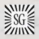 Um modelo de cartão de negócios quadrado com as iniciais colocadas dentro a um painel quadrado. Esta versão também tem uma imagem de fundo. As iniciais estão na fonte Integridade em negrito. Nome e profissão/cargo, juntamente com telefone, correio eletrônico e endereço do sítio a preto no verso, num fundo branco, utilizando variações da fonte Matt Antique. Este modelo é também um bom ponto de partida para uma maior personalização.