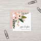 Cartões de visitas florais iluminados em formato quadrado único apresentam um spray de flores e botânicos em tons de rosa-pincel, pêssego e verde-florestal. Adicione seu nome e nome comercial ou título/ocupação no canto inferior direito. Cartões invertidos a letras escura e escura em fundo rosa milenar. Inclui três ícones de mídia social e um campo para seu nome de usuário.