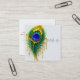Cartão De Visita Quadrado Pena de Peacock com Glam Dourada de Lixo do Shimme