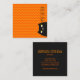 Engraçado, fofo, moderno, cartão de visita de gatos pretos kawaii com padrão de chevron laranja e informações nas costas. Escolha perfeita para o animal de companhia ou para o veterinário.
