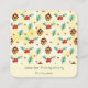 Cartões de visitas com um padrão fofo que apresentam cones de pínus e holly sobre um fundo de aquarela amarela com pequenos círculos brancos espalhados ao redor.