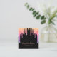 Um fundo preto chic. Decorado com pingos de brilho falso em rosa, roxo, ouro. Personalize e adicione seu nome, título, número de telefone, email e endereço de site.