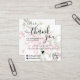 Cartão De Visita Quadrado Pink floral aquarela obrigado de pedido de cinza