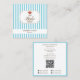 Cartão De Visita Quadrado Preppy Brown & Blue Stripes Bakery Logo QR Code