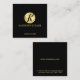 Cartão De Visita Quadrado Preto e monograma elegante Dourado