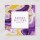 Um cartão de visita prateado branco roxo, muito único e tenente. Este cartão de visita chic elegante apresenta fundo de abstrato líquido mármore. Com código de QR personalizado nas informações de trás e nome e profissão. Pegue-o e faça-o ser seu agora para que sua pequena empresa seja atraente e diferente.
