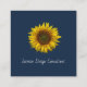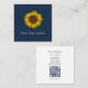Cartão De Visita Quadrado Rustic Sunflower QR code Boho Navy Blue