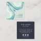 Os cartões de visitas de aquarela elegantes apresentam ilustrações geode ou agate slice em tons verdes pálidos de seaglass. Cartões invertidos a azuis marinho escuro sólido com letras brancas. Inclui três ícones de mídia social e um campo para seu nome de usuário.