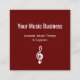 Cartão de visita de aulas de música, sobre fundo vermelho e um símbolo de clave branco. Com a inscrição personalizável, você pode adicionar suas próprias informações. Você também adiciona seu site para permitir conexão com um código QR. Excelente para promover seu negócio musical.