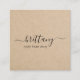 Cartões de visitas quadrados elegantes com a sua assinatura com pinceladas em uma fonte de script manuscrita juntamente com o seu título ou serviço sobre um fundo de papel marrom rústico. A parte de trás tem suas informações de contato. Esta design simples e feminina é excelente para um negócio de artesanatos feito à mão.