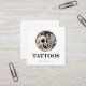 Cartão De Visita Quadrado Tatuagem Artista Mídia Social Crânio e Plantas Mod