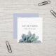 Cartão de visita de quadrado verde com código QR moderno, com um design suculento de tendência sobre um fundo branco e azul claro. Com letras pretas e brancas personalizáveis, você pode adicionar suas próprias informações. Você adiciona seu site ao campo de código QR para que seus clientes pesquisem. Excelente para promover sua empresa design com estilo botânico.