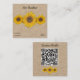 Cartão de visita quadrado com trio de girassol e código QR personalizado. Vai ser impresso em papel kraft rústico. Alma Wad criou um design de um tipo. Personalize ambos os lados agora. Vem num pacote de 100.