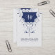 O ornamentado azul Elegante oscila com um monograma personalizável. Antecedentes brancos, modelo de cartão de negócios planejado para casamento.