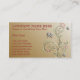Belo cartão de visita em tons de ouro com espirais florais e borboletas racionais.