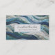 Vibrant blue quilt pattern business card for a quilter and patch worker. Script name and quilted fabric effect background.