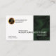 No verso, em um cobrir verde, no topo está o logo dourado familiar, nome comercial, detalhes de contato e uma opção de slogan para você personalizar seu design.