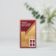 A placa apresenta um design de cima do teto dourado falso encapsulado por uma estrutura de tons vermelhos. No topo está o nome comercial seguido dos detalhes de contato acima das janelas brancas, com seu nome prestigiado e cargo próximo à base. No verso, em um cobrir vermelho, no topo está um logotipo da paisagem dourada que você pode usar. Depois disso vem seu nome prestigioso, os detalhes de contato e uma opção de legenda de slogan para divulgar seus serviços. Um design excelente especialmente para agentes imobiliários.