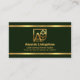 Um cobrir verde esmeralda é acentuado por duas linhas de ouro falsos horizontais que se bordam no topo e na parte inferior do cartão. Você tem um logotipo dourado home que pode ser usado seguido pelo seu nome prestigiado junto com o nome comercial e os detalhes de contato próximos à base. No verso, o mesmo tema de design é usado com o logotipo ouro no topo, seguido do nome comercial, dos detalhes de contato e de uma opção de slogan para divulgar seus serviços. Se desejar, você pode substituir o logotipo por uma foto com uma dimensão de 1.000 x 1.000 pix. Um cartão de excelente para temas imobiliários.