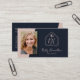 Cartão de visita de agente imobiliário elegante e profissional com uma foto. Logotipo moderno do realtor no lado frontal com fonte do script em cor-de-rosa e fundo cor azul-marinho.
