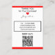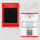 Handmade Jewelry by Name in white against red background. Crafted with Love written in black script (keep or insert short tagline, or delete to leave area blank). Name will appear on front and backside. Two Small Circles against black and white framed background. NOTE: Circles are not pre-cut, you will need to use a small hole punch to make clean cut holes, to then place your Earrings in. Backside has small red heart. Insert telephone number, email address, website, social media handle. Insert Your Business Website QR Code for customers to Shop 24/7, or delete as needed. Original Design by TamiraZDesigns.