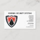 This business card for a security company features a red, black, and white shield as a logo; it may be replaced. Very sharp and professional-looking, and easily adaptable to your needs.