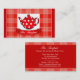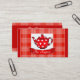 Bule de bolinhas vermelho ilustrado enquadrado em xadrez com a etiqueta vermelha de banner abaixo para exibir o nome da sua empresa. Estas cartões de visitas duplas são perfeitas para cafés bonitos e sem abrigo, cozinhas, varejistas ou hotéis. Imagem e nome comercial na frente e detalhes comerciais no verso. Personalize para atender às suas necessidades.