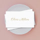 Modelo de cartão de negócios personalizável elegante com fundo branco e fontes Douradas de fauy. Design moderno, simples e elegante. Perfeito para consultor, designer de interiores, blogueiro.