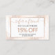 Este cartão de referência criativo apresenta um fundo delicado de pontos confetti caídos em ouro falso rosa para dar a ilusão de um nadador. Incentivar a lealdade do cliente fazendo com que seus clientes encaminhem um amigo em troca de um desconto ou promoção. Personalize o texto para sua oferta exclusiva. Um design de na moda criado para salões, maquiadores, estilistas de cabelo, salões de unhas e muito mais. Arte original e design © 1201AM Design Studio | www.1201am.com