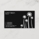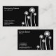 Um na moda moderno negócio/cartão de visita com um arranjo simples, mas atraente, de relógios de dandelões. Dados da empresa e endereço na frente com nome e outros contatos no verso.