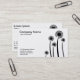 Um na moda moderno negócio/cartão de visita com um arranjo simples, mas atraente, de relógios de dandelões. Dados da empresa e endereço na frente com nome e outros contatos no verso.